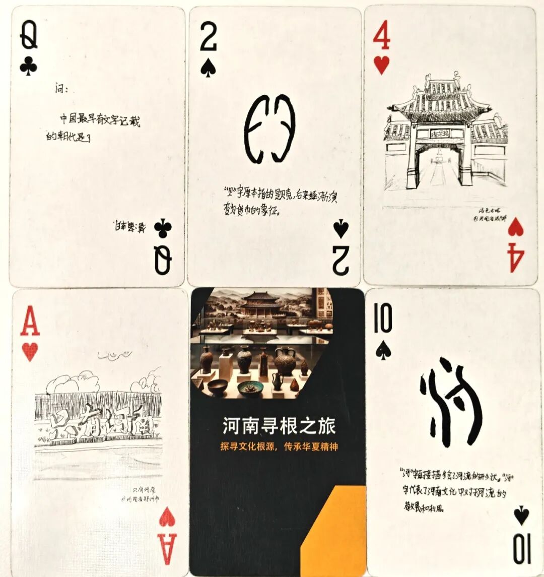 这是一副由10岁小学生亲手设计、营销并最终量产卖出300副的文创扑克牌,是“2024博物少年·河南寻根创客营”里的其中一个小组项目。