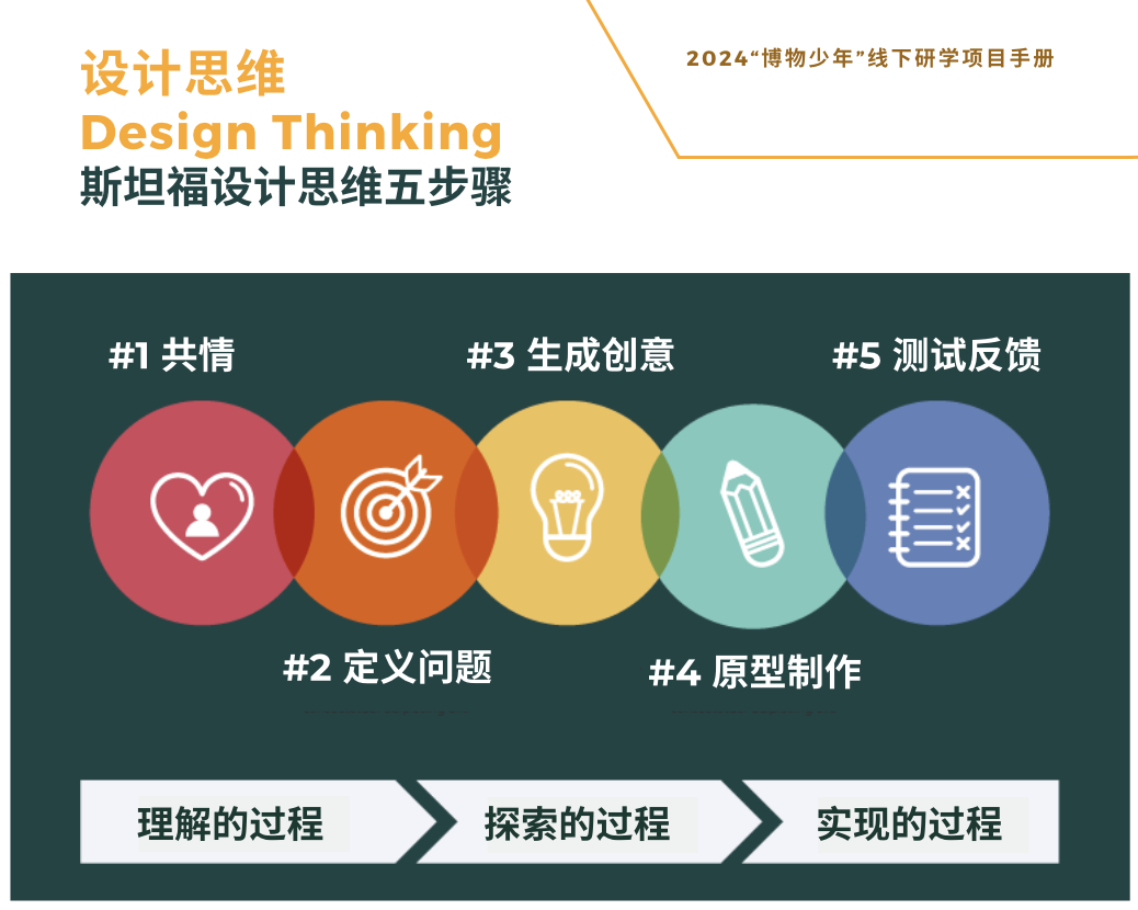 1. 共情 Empathy:他们不是“先想我要设计什么”,而是去观察别人遇到了什么困难。有小组在采访了10位小学生后,发现大多数人在博物馆“走马观花”,因为“听不懂也没兴趣”。