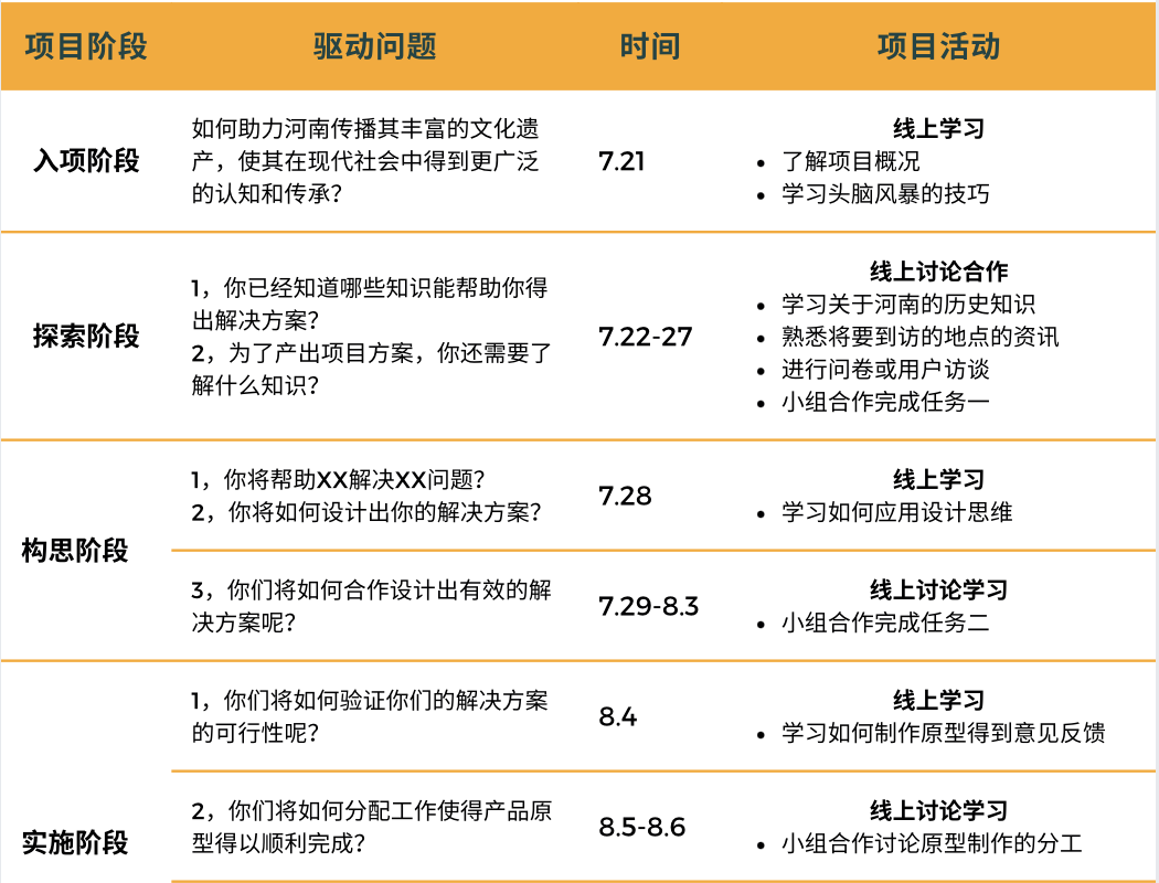 这一阶段,孩子们从“什么是河南文化”入手,逐步拆解并定义“文化传播中的真实痛点”,再结合技术与创意工具,设计出一套套具有传播价值的原型方案。